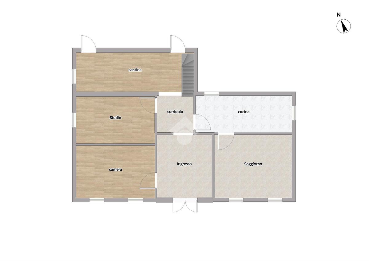 Al piano terra l’ingresso accoglie in un ambiente luminoso e ben distribuito, dove si trovano un ampio soggiorno perfetto per momenti di convivialità, uno studio ideale per chi desidera uno spazio dedicato al lavoro o alla lettura, una cucina abitabile dal carattere funzionale e accogliente, oltre a un comodo bagno di servizio.